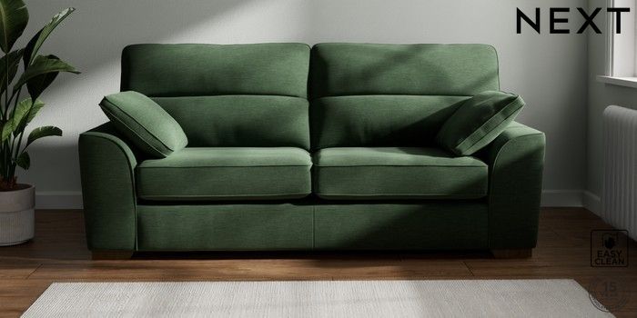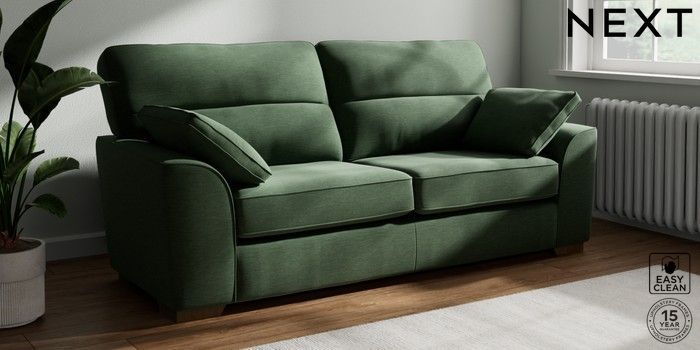 7.2.10 Stamford Highback 3 Seater Sofa Fine Chenille Easy Clean Mid Khaki Green Large Square Angle - Mid | Made Click here to use our website with more accessibility support, for example screen readers