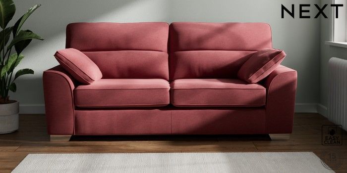 7.2.10 Stamford Highback 3 Seater Sofa Fine Chenille Easy Clean Mid Pink Large Square Angle - Chrome Metal | Made Click here to use our website with more accessibility support, for example screen readers