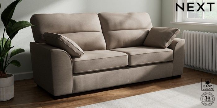 7.2.10 Stamford Highback 3 Seater Sofa Fine Chenille Easy Clean Mid Taupe Brown Large Square Angle - Dark | Made Click here to use our website with more accessibility support, for example screen readers