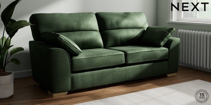 7.2.10 Stamford Highback 3 Seater Sofa Luxe Chenille Dark Green Large Square Angle - Light | Made Click here to use our website with more accessibility support, for example screen readers