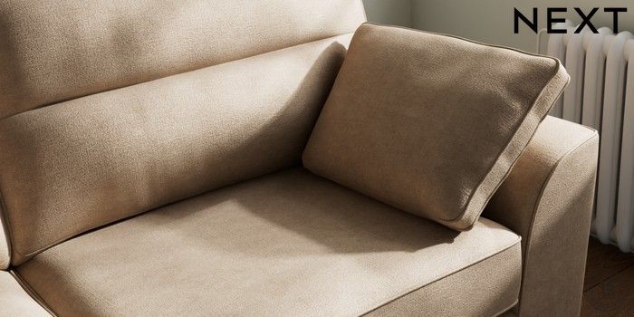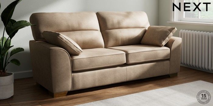 7.2.10 Stamford Highback 3 Seater Sofa Luxe Chenille Mid Camel Beige Large Square Angle - Brushed Brass | Made Click here to use our website with more accessibility support, for example screen readers
