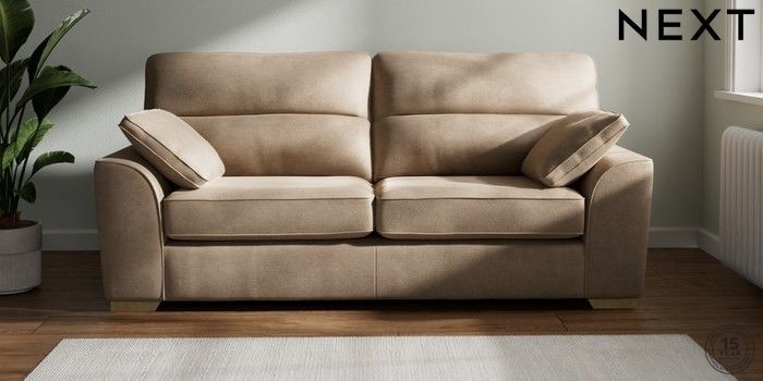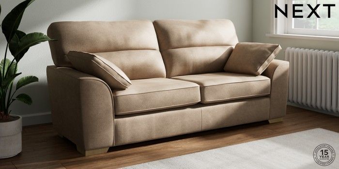 7.2.10 Stamford Highback 3 Seater Sofa Luxe Chenille Mid Camel Beige Large Square Angle - Light | Made Click here to use our website with more accessibility support, for example screen readers