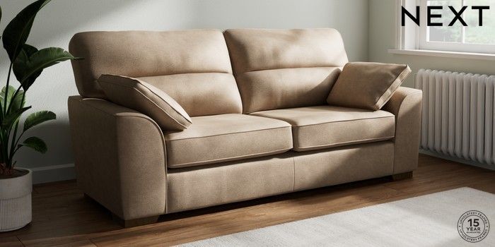 7.2.10 Stamford Highback 3 Seater Sofa Luxe Chenille Mid Camel Beige Large Square Angle - Mid | Made Click here to use our website with more accessibility support, for example screen readers