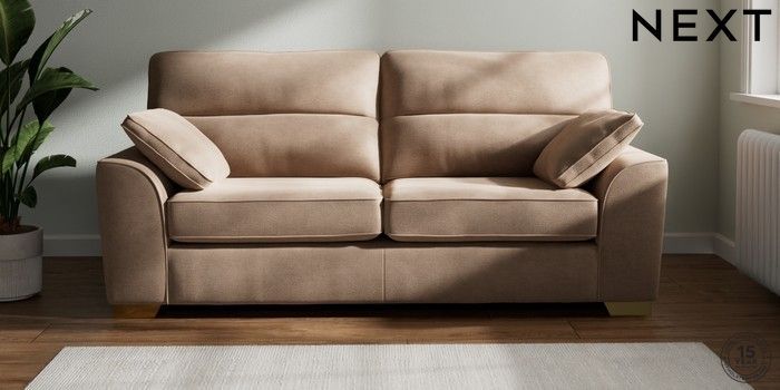 7.2.10 Stamford Highback 3 Seater Sofa Luxe Chenille Mid Natural Large Square Angle - Brushed Brass | Made Click here to use our website with more accessibility support, for example screen readers