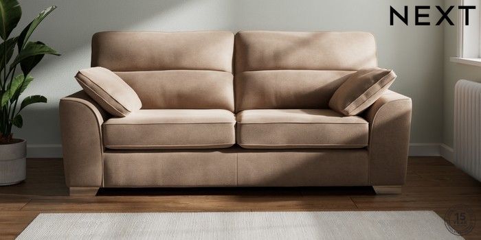 7.2.10 Stamford Highback 3 Seater Sofa Luxe Chenille Mid Natural Large Square Angle - Chrome Metal | Made Click here to use our website with more accessibility support, for example screen readers
