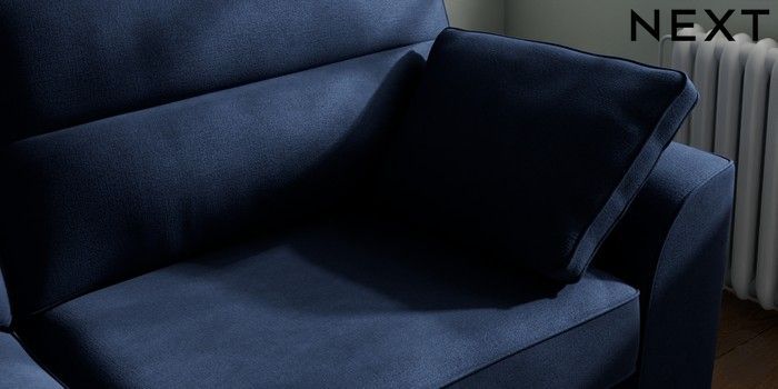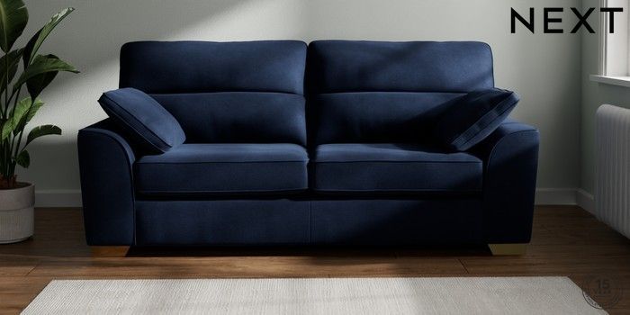 7.2.10 Stamford Highback 3 Seater Sofa Luxe Chenille Navy Blue Large Square Angle - Brushed Brass | Made Click here to use our website with more accessibility support, for example screen readers