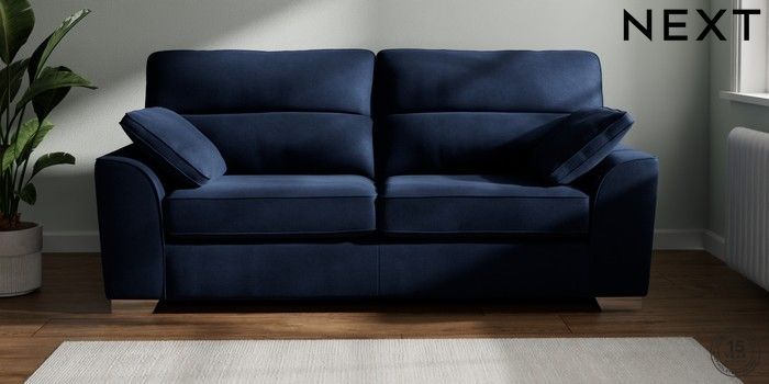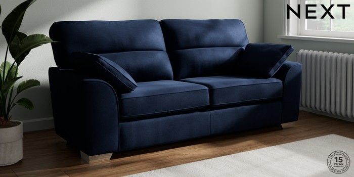 7.2.10 Stamford Highback 3 Seater Sofa Luxe Chenille Navy Blue Large Square Angle - Chrome Metal | Made Click here to use our website with more accessibility support, for example screen readers
