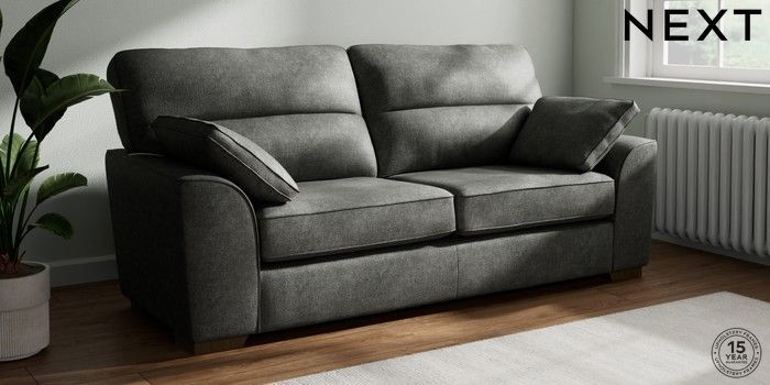 7.2.10 Stamford Highback 3 Seater Sofa Plush Chenille Dark Grey Large Square Angle - Mid | Made Click here to use our website with more accessibility support, for example screen readers