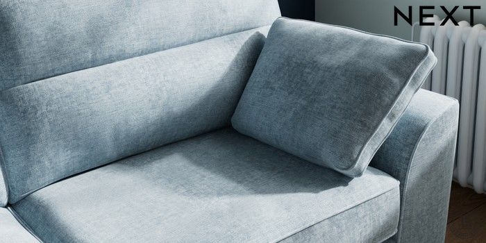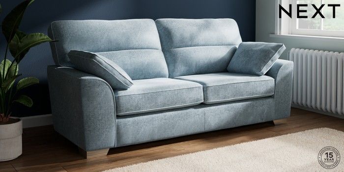 7.2.10 Stamford Highback 3 Seater Sofa Plush Chenille Light Blue Large Square Angle - Chrome Metal | Made Click here to use our website with more accessibility support, for example screen readers