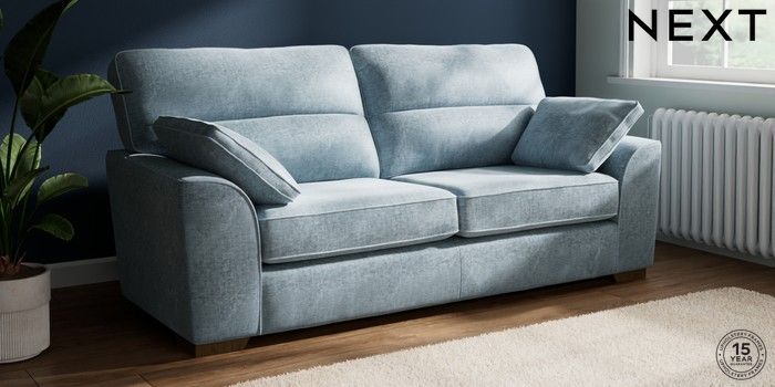 7.2.10 Stamford Highback 3 Seater Sofa Plush Chenille Light Blue Large Square Angle - Mid | Made Click here to use our website with more accessibility support, for example screen readers