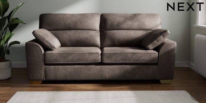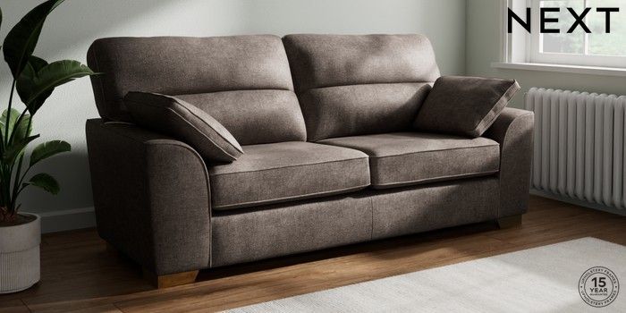 7.2.10 Stamford Highback 3 Seater Sofa Plush Chenille Mink Brown Large Square Angle - Brushed Brass | Made Click here to use our website with more accessibility support, for example screen readers