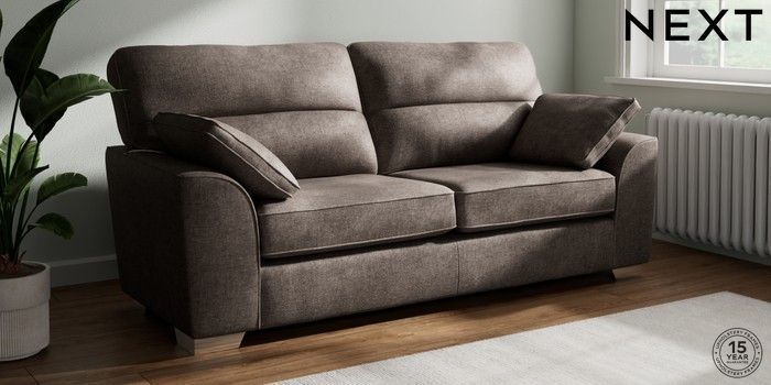 7.2.10 Stamford Highback 3 Seater Sofa Plush Chenille Mink Brown Large Square Angle - Chrome Metal | Made Click here to use our website with more accessibility support, for example screen readers