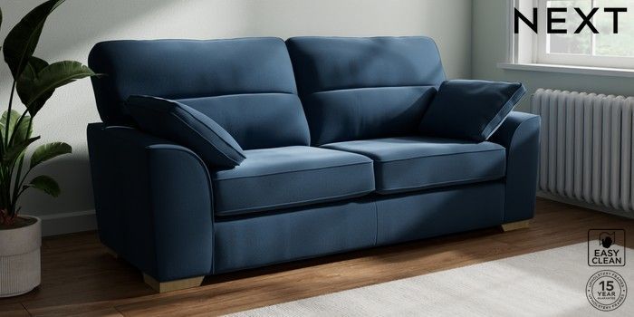 7.2.10 Stamford Highback 3 Seater Sofa Plush Velvet Easy Clean Airforce Blue Large Square Angle - Light | Made Click here to use our website with more accessibility support, for example screen readers