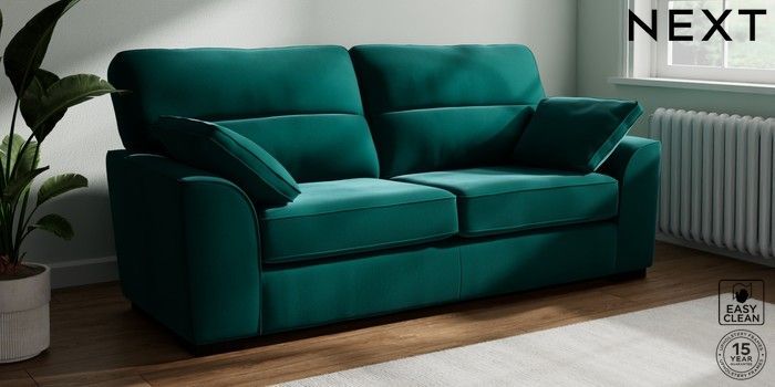 7.2.10 Stamford Highback 3 Seater Sofa Plush Velvet Easy Clean Juniper Green Large Square Angle - Dark | Made Click here to use our website with more accessibility support, for example screen readers