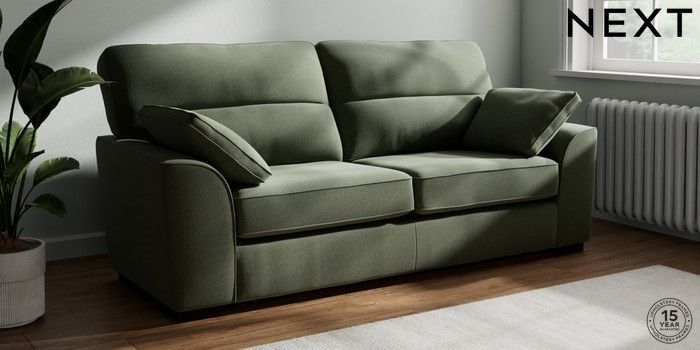 7.2.10 Stamford Highback 3 Seater Sofa Relaxed Linen Look Dark Green Large Square Angle - Dark | Made Click here to use our website with more accessibility support, for example screen readers