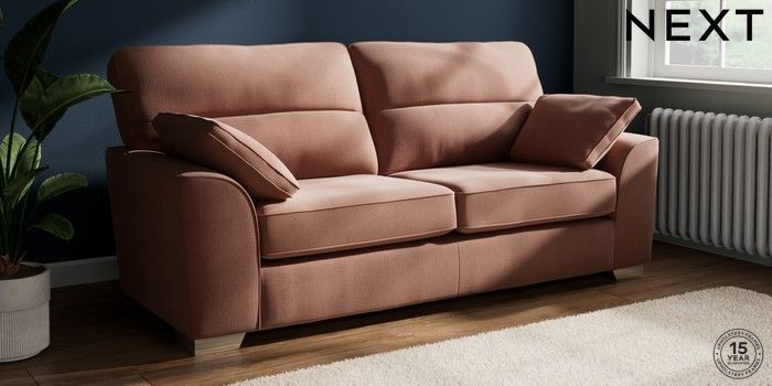 7.2.10 Stamford Highback 3 Seater Sofa Relaxed Linen Look Light Rust Brown Large Square Angle - Chrome Metal | Made Click here to use our website with more accessibility support, for example screen readers