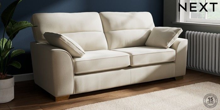 7.2.10 Stamford Highback 3 Seater Sofa Relaxed Linen Look Oyster Large Square Angle - Brushed Brass | Made Click here to use our website with more accessibility support, for example screen readers