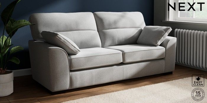 7.2.10 Stamford Highback 3 Seater Sofa Tweedy Blend Easy Clean Light Silver Grey Large Square Angle - Dark | Made Click here to use our website with more accessibility support, for example screen readers