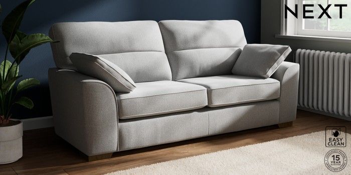 7.2.10 Stamford Highback 3 Seater Sofa Tweedy Blend Easy Clean Light Silver Grey Large Square Angle - Mid | Made Click here to use our website with more accessibility support, for example screen readers