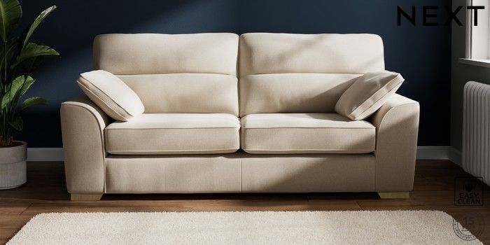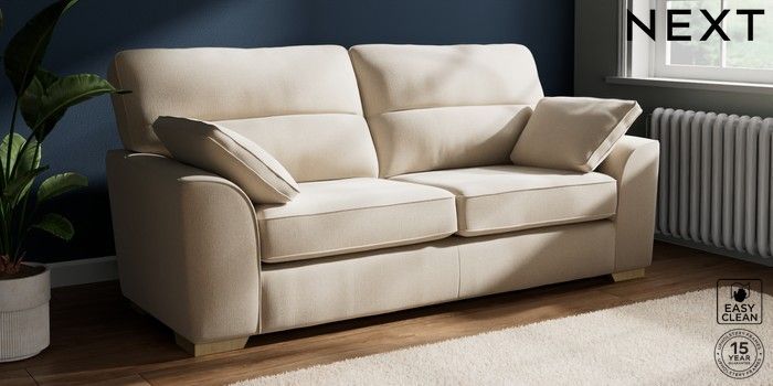 7.2.10 Stamford Highback 3 Seater Sofa Tweedy Blend Easy Clean Oyster Large Square Angle - Light | Made Click here to use our website with more accessibility support, for example screen readers