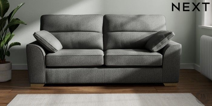 7.2.10 Stamford Highback 3 Seater Sofa Tweedy Chenille Dark Grey Large Square Angle - Light | Made Click here to use our website with more accessibility support, for example screen readers