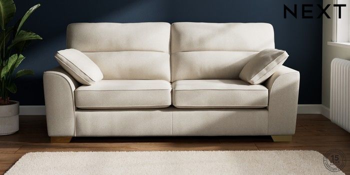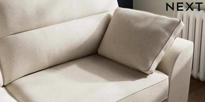 7.2.10 Stamford Highback 3 Seater Sofa Tweedy Chenille Oyster Large Square Angle - Brushed Brass | Made Click here to use our website with more accessibility support, for example screen readers