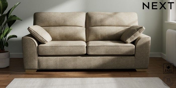 7.2.10 Stamford Highback 3 Seater Sofa Woven Chenille Easy Clean Mid Natural Large Square Angle - Light | Made Click here to use our website with more accessibility support, for example screen readers