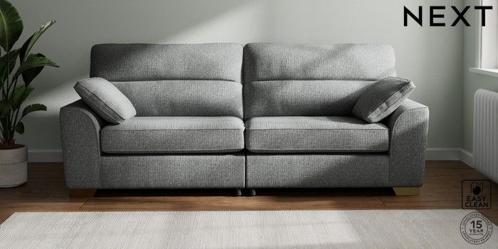 7.2.10 Stamford Highback 4 Seater Sofa Chunky Boucle Easy Clean Mid Grey Large Square Angle - Brushed Brass | Made Click here to use our website with more accessibility support, for example screen readers