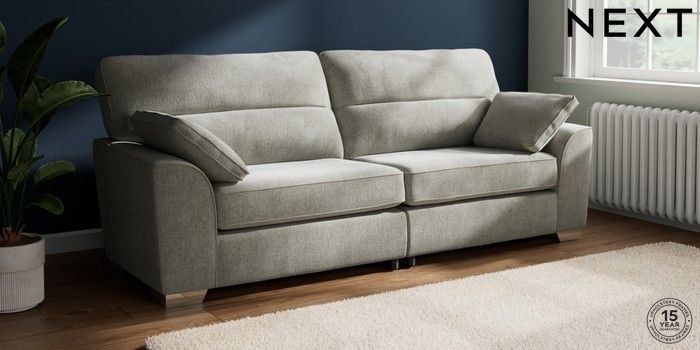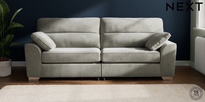 7.2.10 Stamford Highback 4 Seater Sofa Chunky Chenille Light Grey Large Square Angle - Chrome Metal | Made Click here to use our website with more accessibility support, for example screen readers