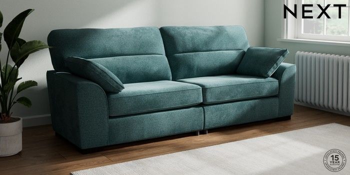7.2.10 Stamford Highback 4 Seater Sofa Chunky Chenille Mid Teal Green Large Square Angle - Dark | Made Click here to use our website with more accessibility support, for example screen readers