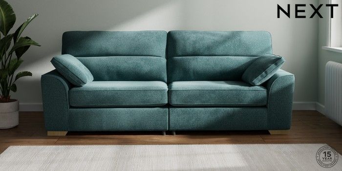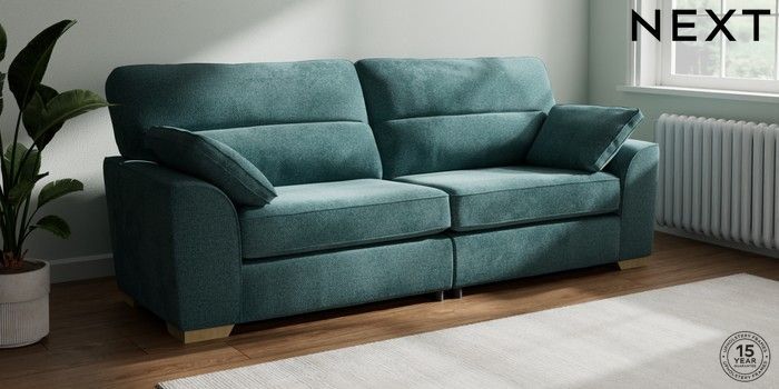 7.2.10 Stamford Highback 4 Seater Sofa Chunky Chenille Mid Teal Green Large Square Angle - Light | Made Click here to use our website with more accessibility support, for example screen readers