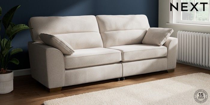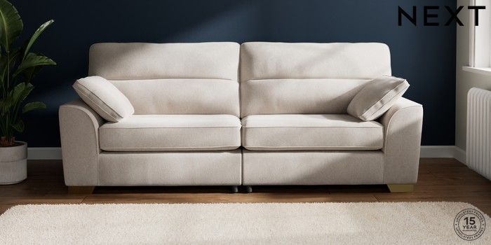 7.2.10 Stamford Highback 4 Seater Sofa Chunky Chenille Oyster Large Square Angle - Brushed Brass | Made Click here to use our website with more accessibility support, for example screen readers