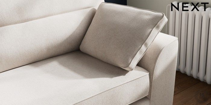 7.2.10 Stamford Highback 4 Seater Sofa Chunky Chenille Oyster Large Square Angle - Chrome Metal | Made Click here to use our website with more accessibility support, for example screen readers