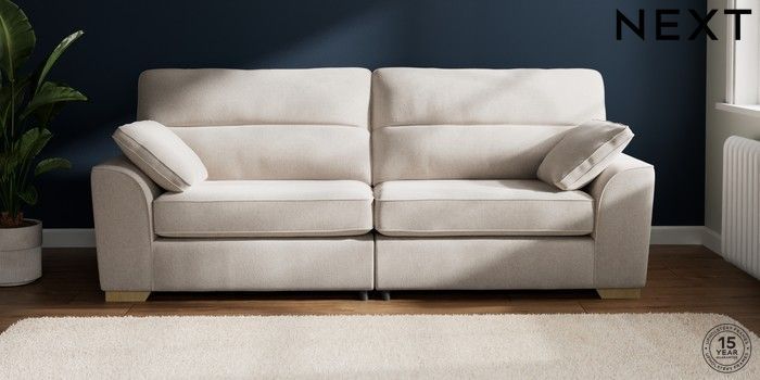 7.2.10 Stamford Highback 4 Seater Sofa Chunky Chenille Oyster Large Square Angle - Light | Made Click here to use our website with more accessibility support, for example screen readers