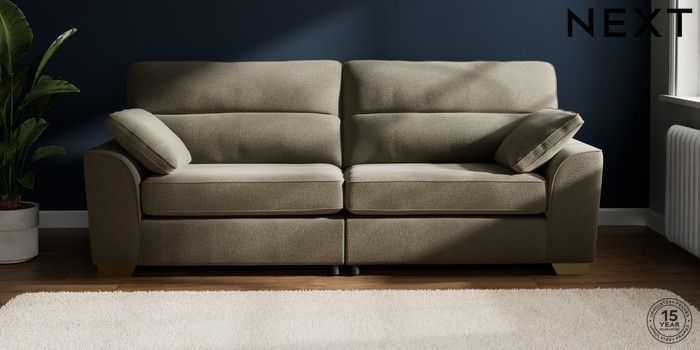 7.2.10 Stamford Highback 4 Seater Sofa Chunky Marl Light Olive Green Large Square Angle - Brushed Brass | Made Click here to use our website with more accessibility support, for example screen readers