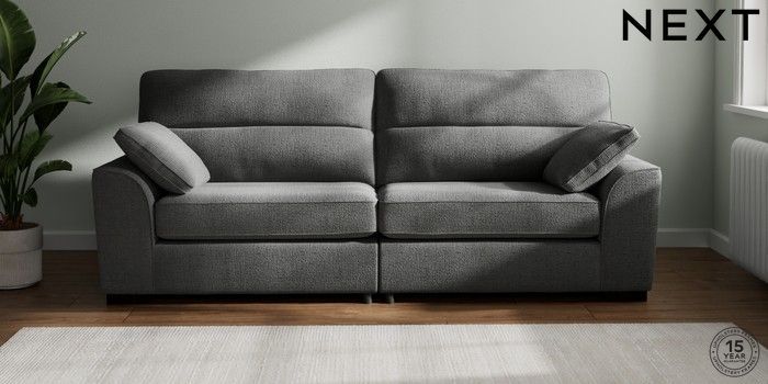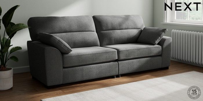 7.2.10 Stamford Highback 4 Seater Sofa Chunky Texture Dark Grey Large Square Angle - Dark | Made Click here to use our website with more accessibility support, for example screen readers