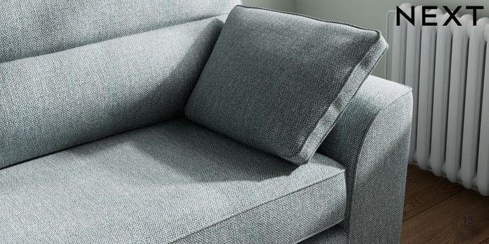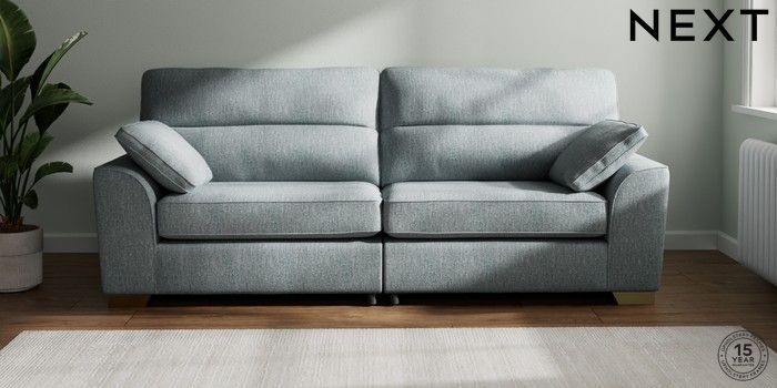 7.2.10 Stamford Highback 4 Seater Sofa Chunky Weave Mid Blue Large Square Angle - Brushed Brass | Made Click here to use our website with more accessibility support, for example screen readers