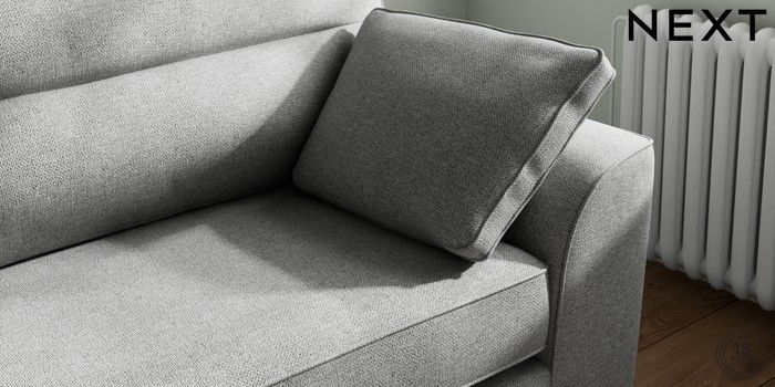 7.2.10 Stamford Highback 4 Seater Sofa Chunky Weave Mid Grey Large Square Angle - Brushed Brass | Made Click here to use our website with more accessibility support, for example screen readers