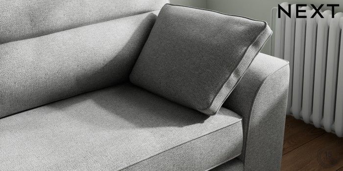 7.2.10 Stamford Highback 4 Seater Sofa Chunky Weave Mid Grey Large Square Angle - Chrome Metal | Made Click here to use our website with more accessibility support, for example screen readers