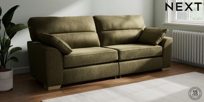 7.2.10 Stamford Highback 4 Seater Sofa Cotswold Chenille Dark Green Large Square Angle - Light | Made Click here to use our website with more accessibility support, for example screen readers