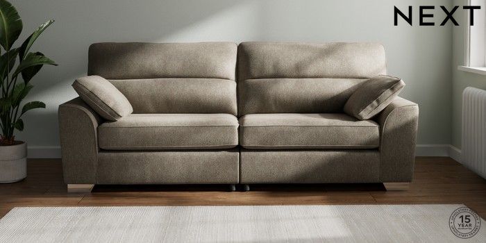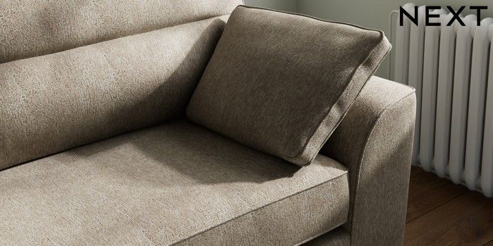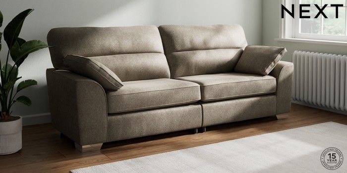 7.2.10 Stamford Highback 4 Seater Sofa Cotswold Chenille Mid Mink Brown Large Square Angle - Chrome Metal | Made Click here to use our website with more accessibility support, for example screen readers