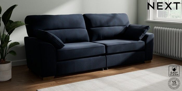 7.2.10 Stamford Highback 4 Seater Sofa Fine Chenille Easy Clean Dark Navy Blue Large Square Angle - Mid | Made Click here to use our website with more accessibility support, for example screen readers