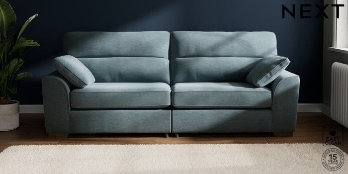 7.2.10 Stamford Highback 4 Seater Sofa Fine Chenille Easy Clean Mid Blue Large Square Angle - Mid | Made Click here to use our website with more accessibility support, for example screen readers