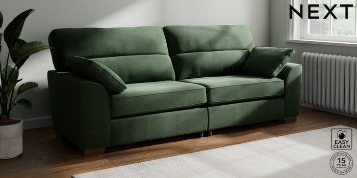 7.2.10 Stamford Highback 4 Seater Sofa Fine Chenille Easy Clean Mid Khaki Green Large Square Angle - Brushed Brass | Made Click here to use our website with more accessibility support, for example screen readers