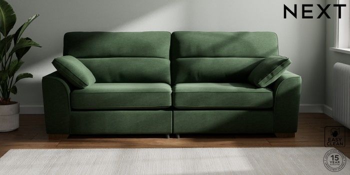 7.2.10 Stamford Highback 4 Seater Sofa Fine Chenille Easy Clean Mid Khaki Green Large Square Angle - Mid | Made Click here to use our website with more accessibility support, for example screen readers
