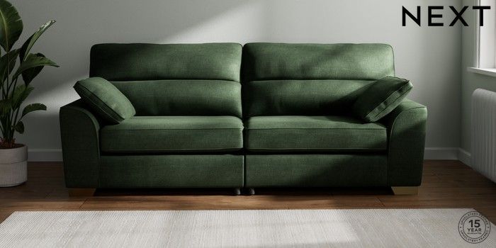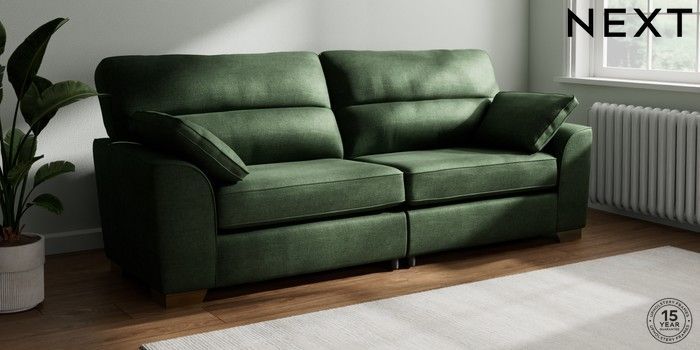 7.2.10 Stamford Highback 4 Seater Sofa Luxe Chenille Dark Green Large Square Angle - Brushed Brass | Made Click here to use our website with more accessibility support, for example screen readers