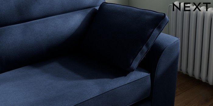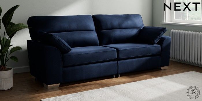 7.2.10 Stamford Highback 4 Seater Sofa Luxe Chenille Navy Blue Large Square Angle - Chrome Metal | Made Click here to use our website with more accessibility support, for example screen readers