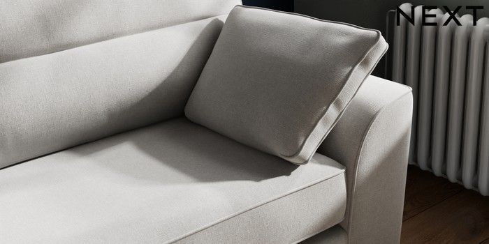 7.2.10 Stamford Highback 4 Seater Sofa Natural Mix Light Grey Large Square Angle - Chrome Metal | Made Click here to use our website with more accessibility support, for example screen readers