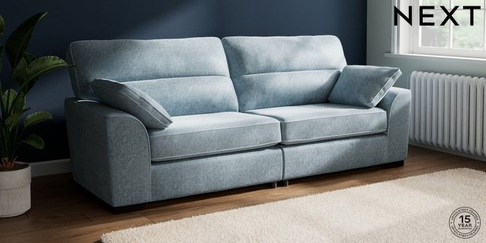 7.2.10 Stamford Highback 4 Seater Sofa Plush Chenille Light Blue Large Square Angle - Dark | Made Click here to use our website with more accessibility support, for example screen readers