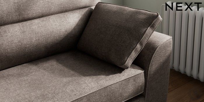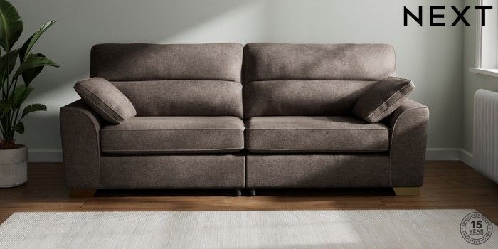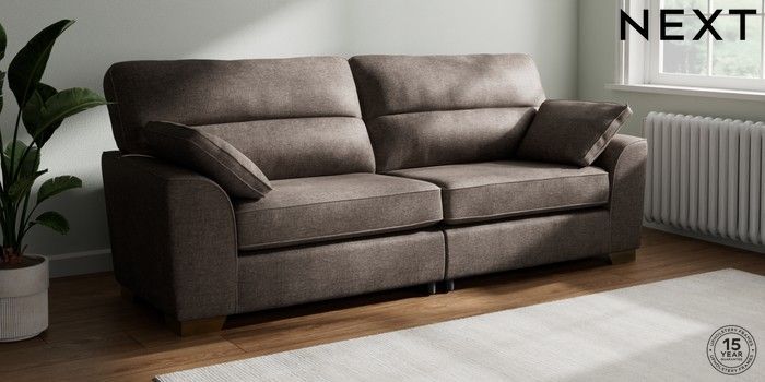 7.2.10 Stamford Highback 4 Seater Sofa Plush Chenille Mink Brown Large Square Angle - Brushed Brass | Made Click here to use our website with more accessibility support, for example screen readers